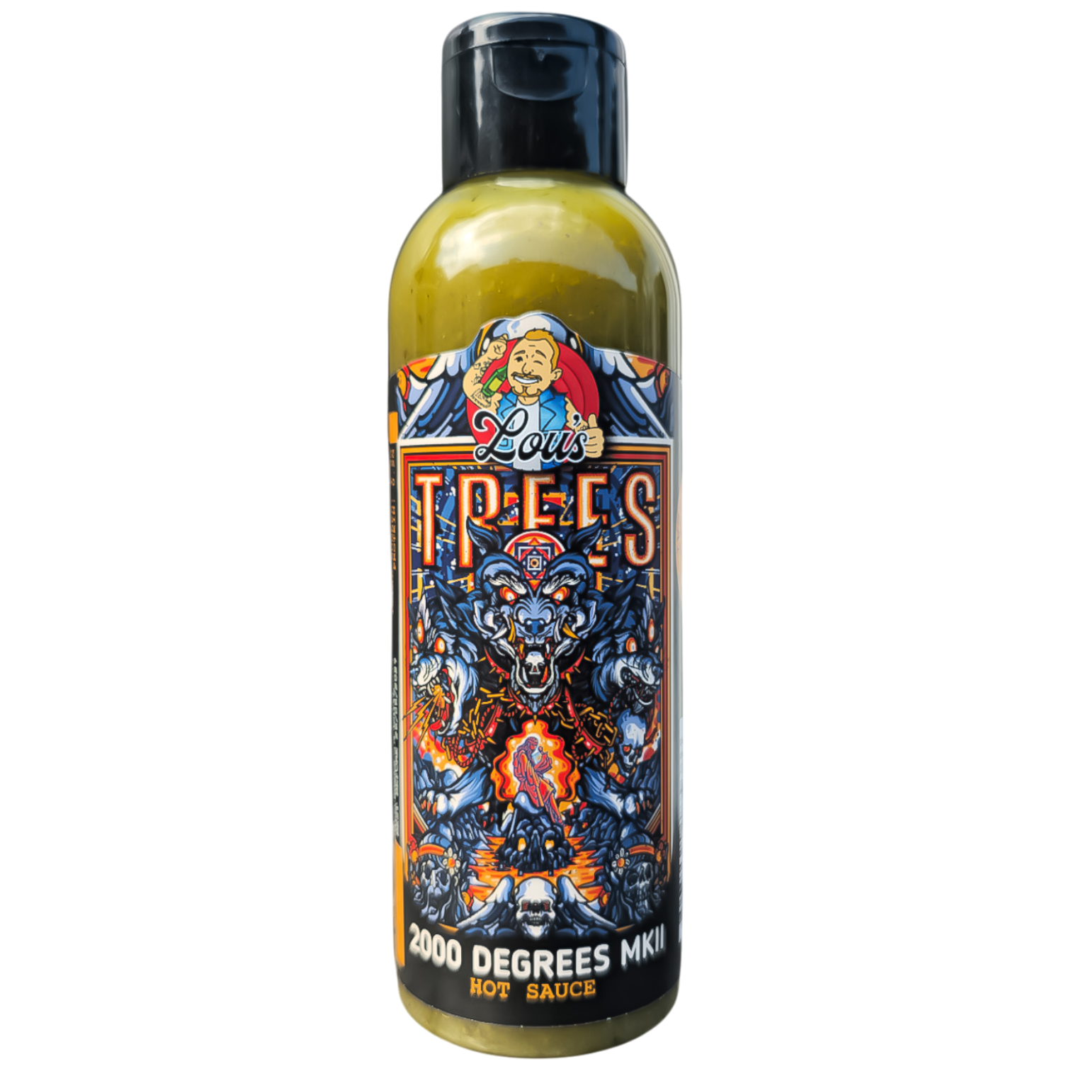 Here it is, the Official 2k25 2000 Trees hot sauce, and lemme tell ya, it's an absolute rager. Zesty as hell from fresh lime juice with a healthy dose of fermented serrano and green habanero peppers to bring the heat, and sweetened slightly with 100% pure apple juice